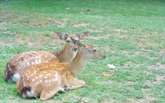 习性:梅花鹿栖息在针、阔混交林的边缘和山地草原,随季节变化,栖息地有所改变。群居,清晨和黄昏活动,嗅、听觉发达,视觉较差。行动轻快敏捷,觅食草、树叶、嫩芽、树皮、苔藓等,喜舔食盐碱。
