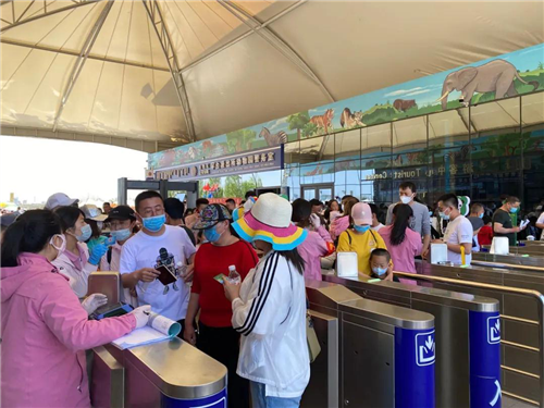 动物园在做足疫情防控措施的前提下敞开大门迎接游客,严格落实游客入园限流措施。每位游客入园前必须按照要求佩戴口罩,排队时前后间隔一米以上,依次由工作人员测量体温并扫码进行实名制健康信息登记后方可入园。
